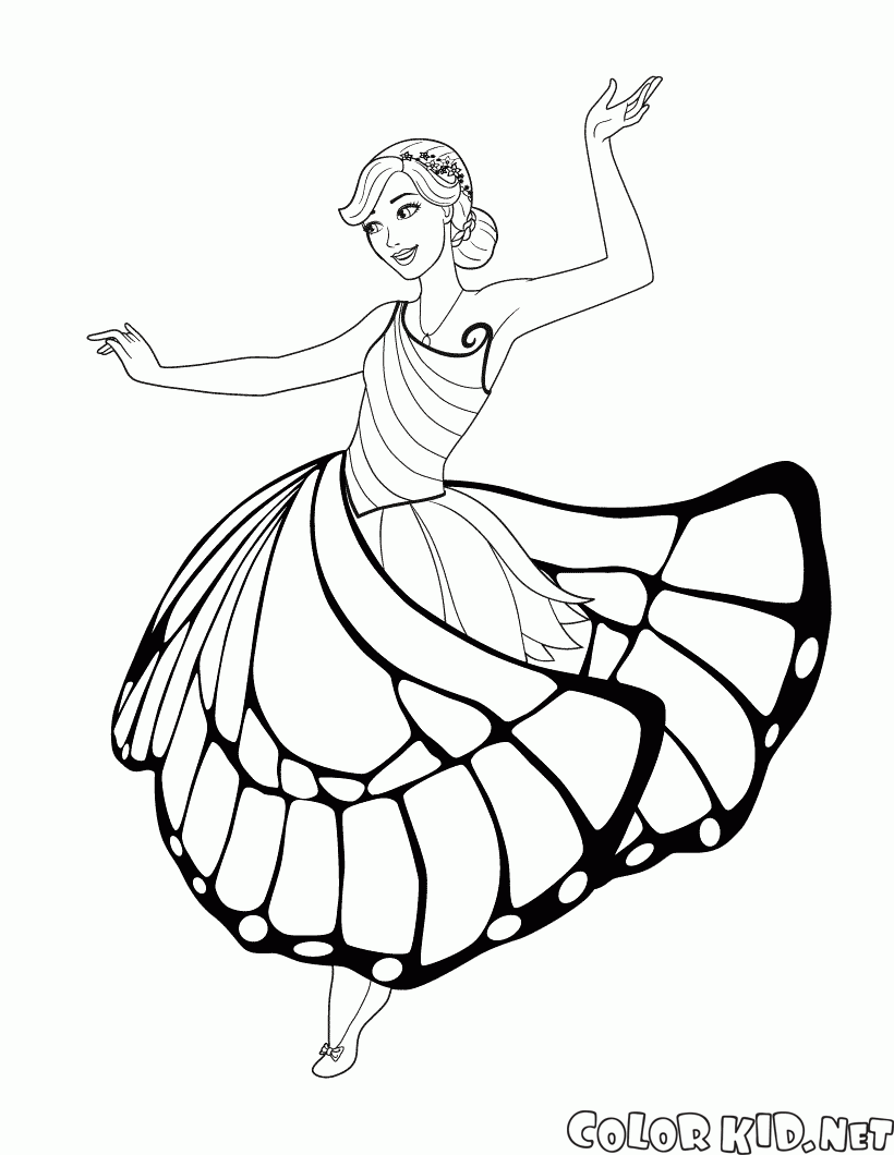 Раскраска - Фея-бабочка и танцы