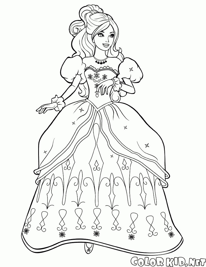 Раскраску для детей Барби в пышном платье вы можете бесплатно скачать и распечатать на нашем сайте.