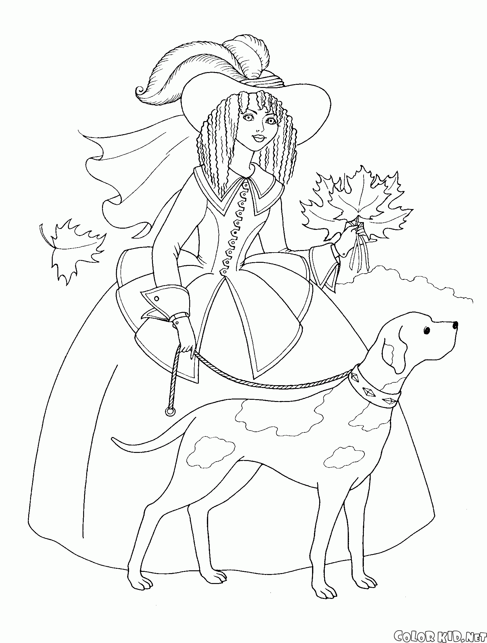 Раскраску для детей Принцесса на прогулке вы можете бесплатно скачать и распечатать на нашем сайте.