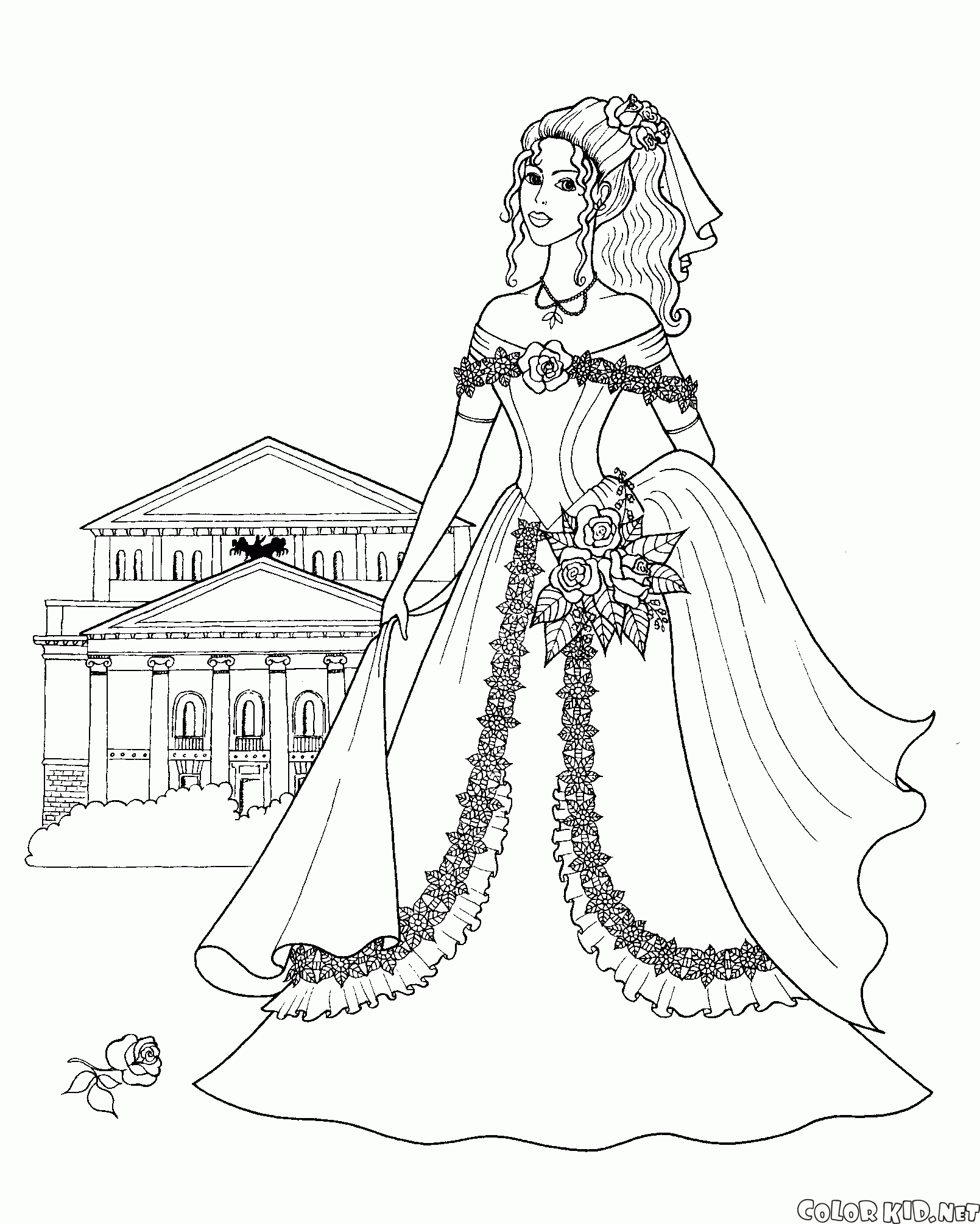 Раскраску для детей Принцесса с букетом вы можете бесплатно скачать и распечатать на нашем сайте.