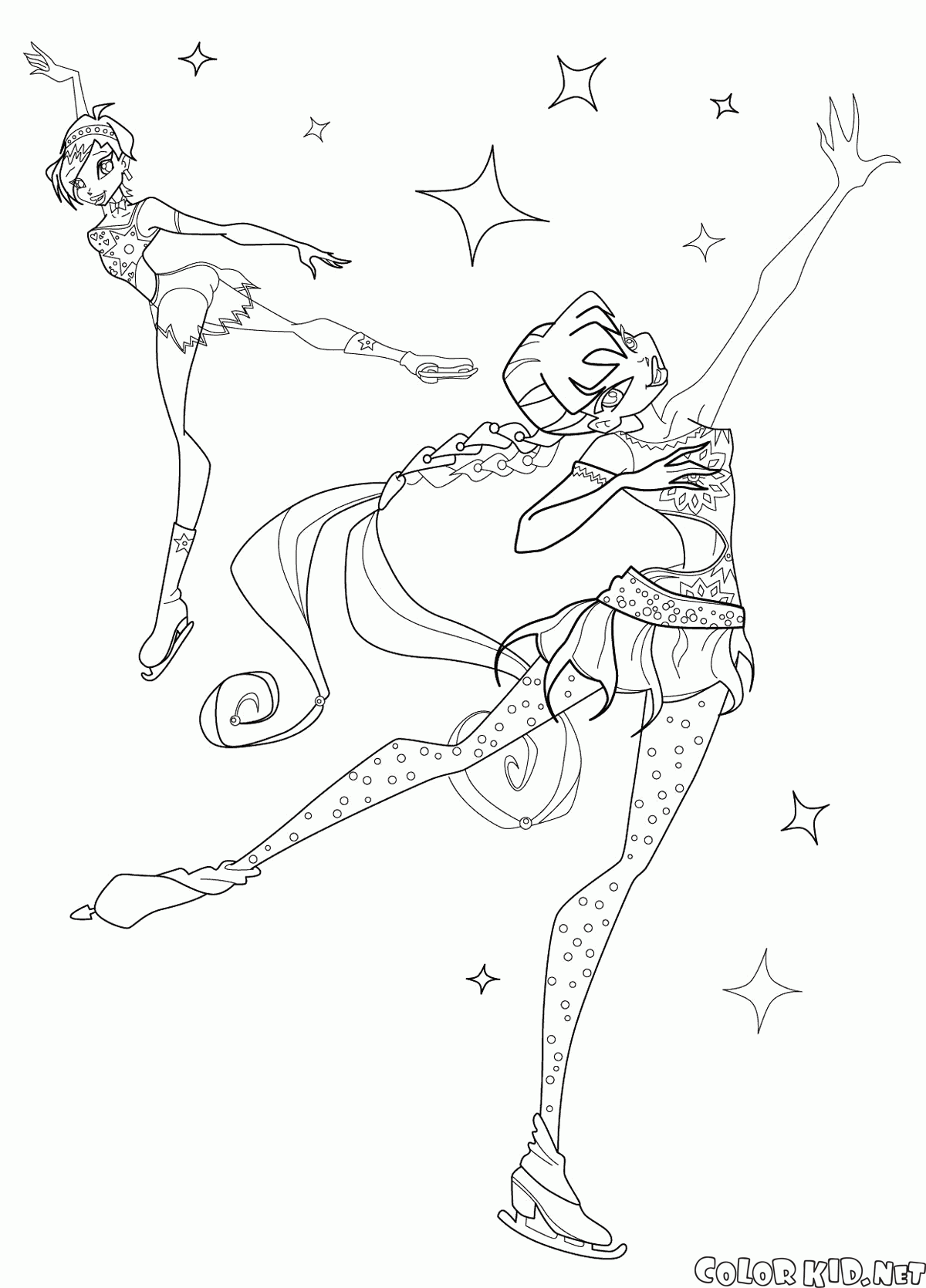 Раскраску для детей Винкс и коньки вы можете бесплатно скачать и распечатать на нашем сайте.