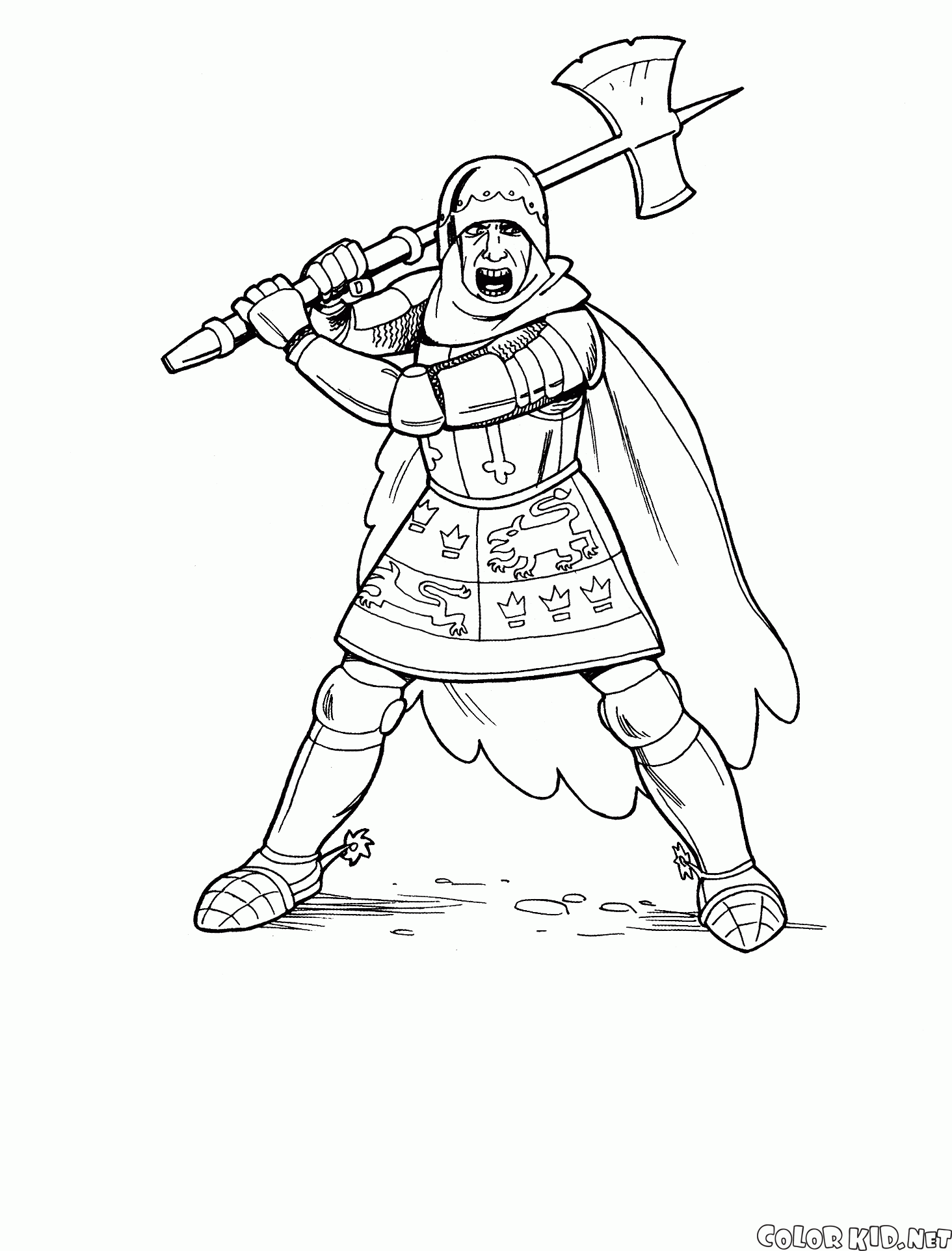 Раскраску для детей Рыцарь с боевым топором вы можете бесплатно скачать и распечатать на нашем сайте.