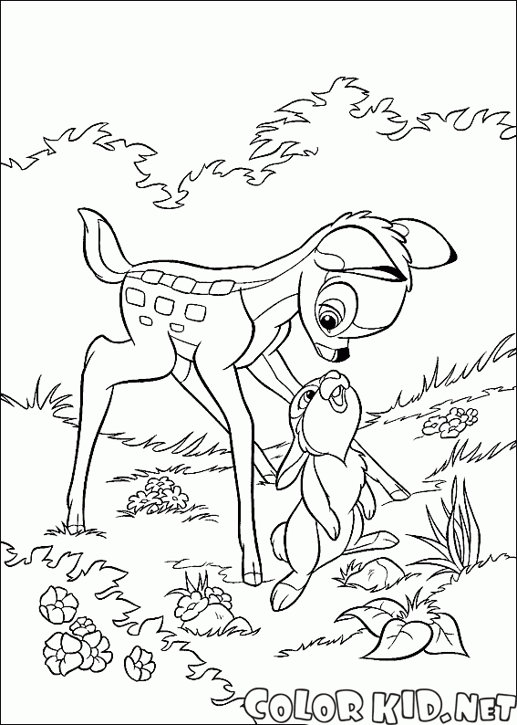 Раскраску для детей Бэмби и Топутон вы можете бесплатно скачать и распечатать на нашем сайте.