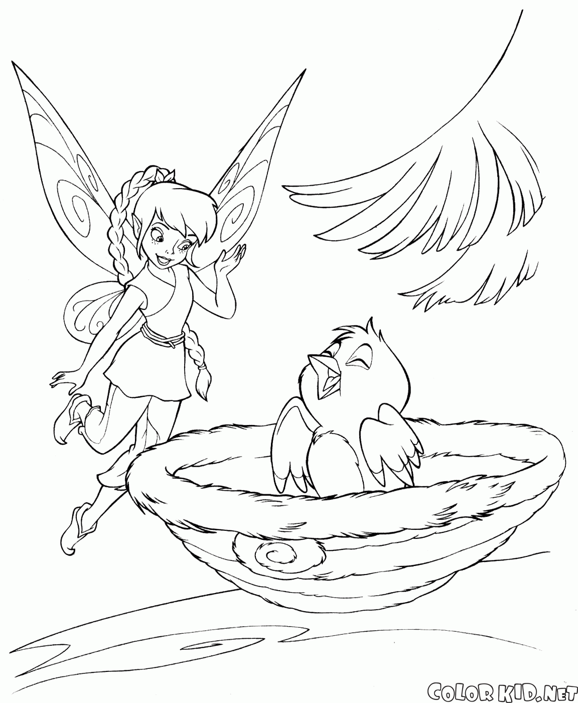 Раскраска - Фея и птенец