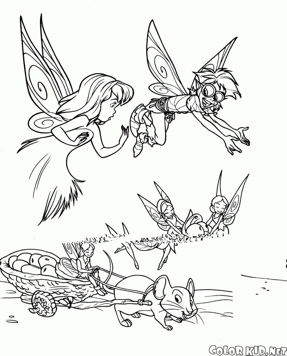 Ловкий мышонок возит сыр собранный феями. Веселые феи несут кусочек сыра в повозку, запряженную мышонком. Бобл с удовольствием показывает Динь-Динь свое изобретение.