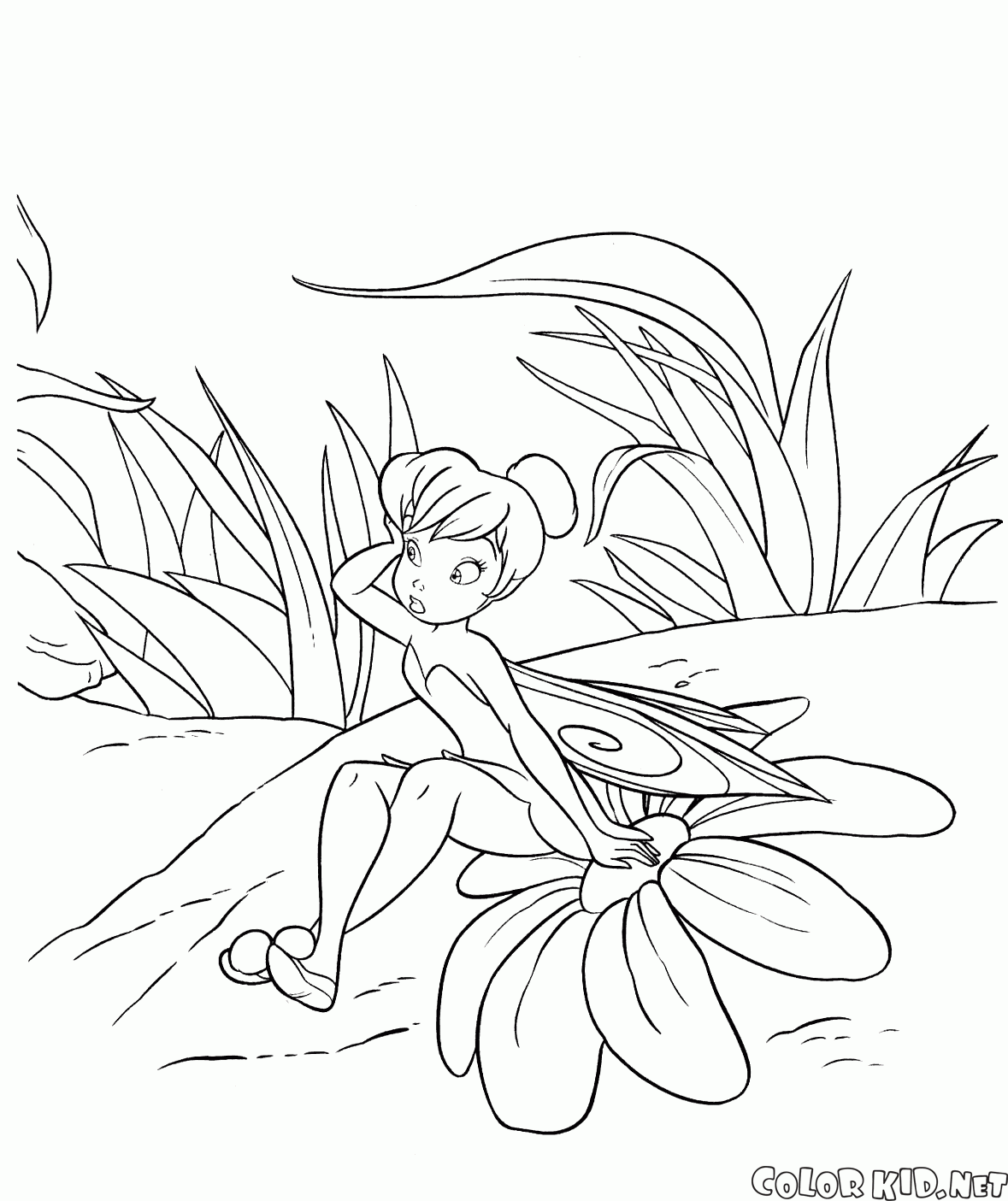 Динь-Динь решила сделать паузу в работе. Устав чинить разные предметы, фея уселась между высокой травой на большой цветок и осматривается по сторонам.