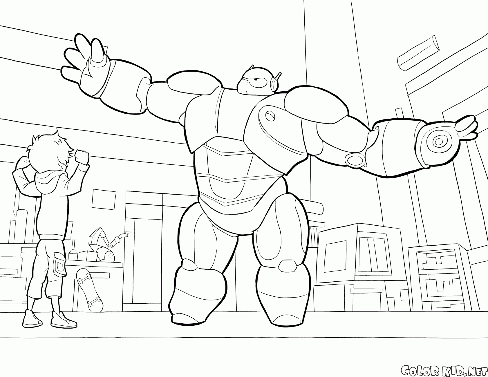 Раскраску для детей Обновленный робот Беймакс вы можете бесплатно скачать и распечатать на нашем сайте.