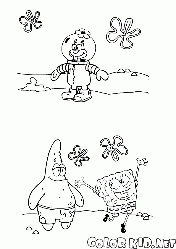 Раскраску для детей Друзья Губки Боба вы можете бесплатно скачать и распечатать на нашем сайте.