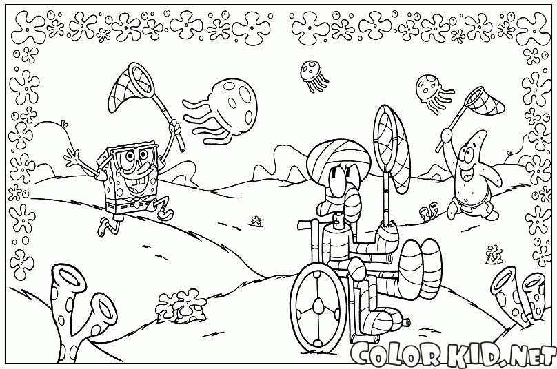 Раскраску для детей Все ловят медуз вы можете бесплатно скачать и распечатать на нашем сайте.