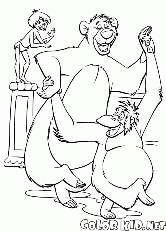 Маугли наблюдает за танцем доброго медведя Балу и очень веселой обезьяны
