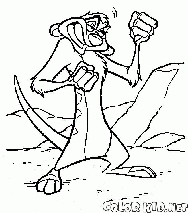 Раскраску для детей Тимон учится драться вы можете бесплатно скачать и распечатать на нашем сайте.