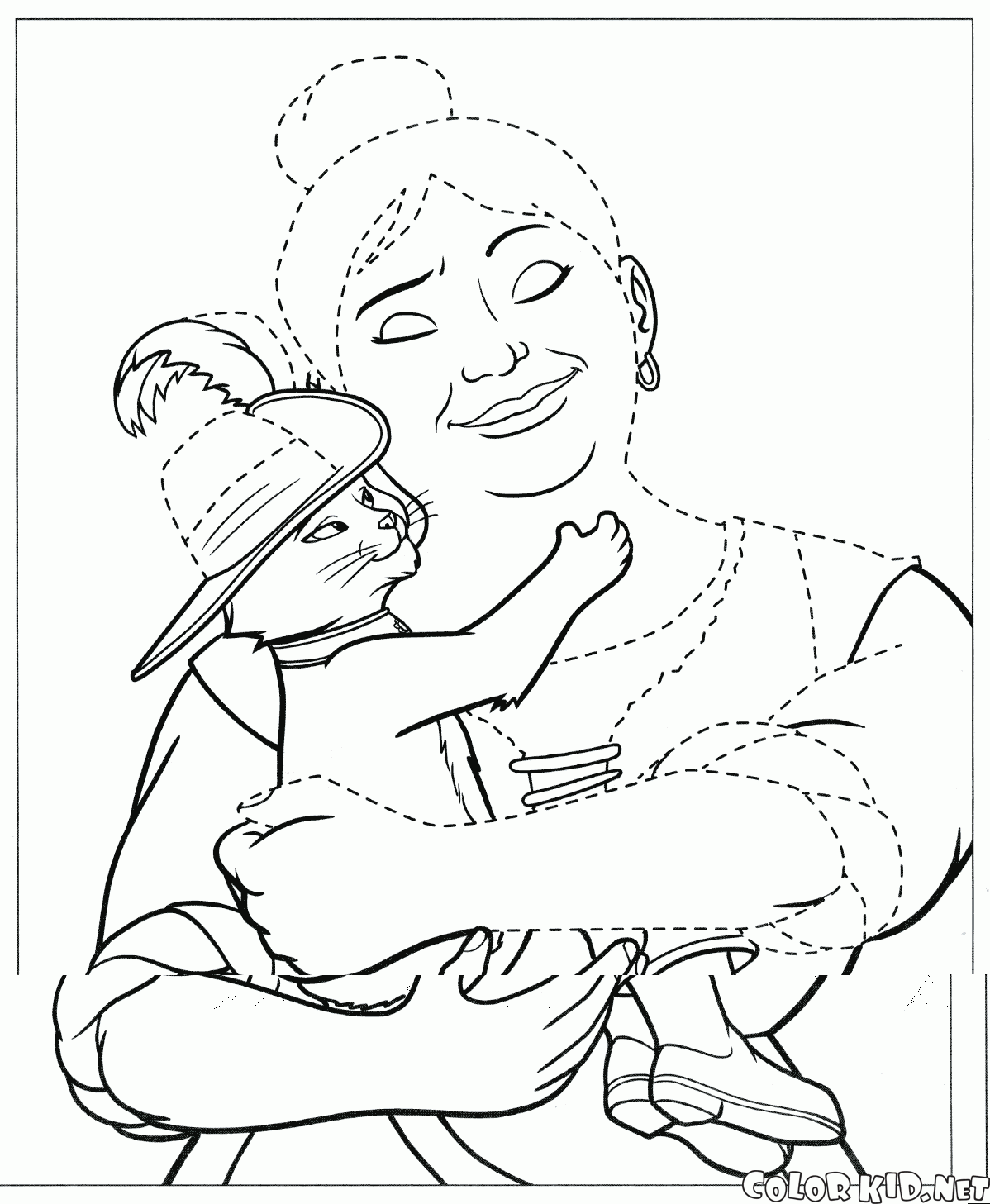 Кот в Сапогах и его добрая мачеха. Имельда нашла подкидного котенка у дверей приюта. Она воспитала его как родного сына. Теперь кот любит и заботится о своей маме.