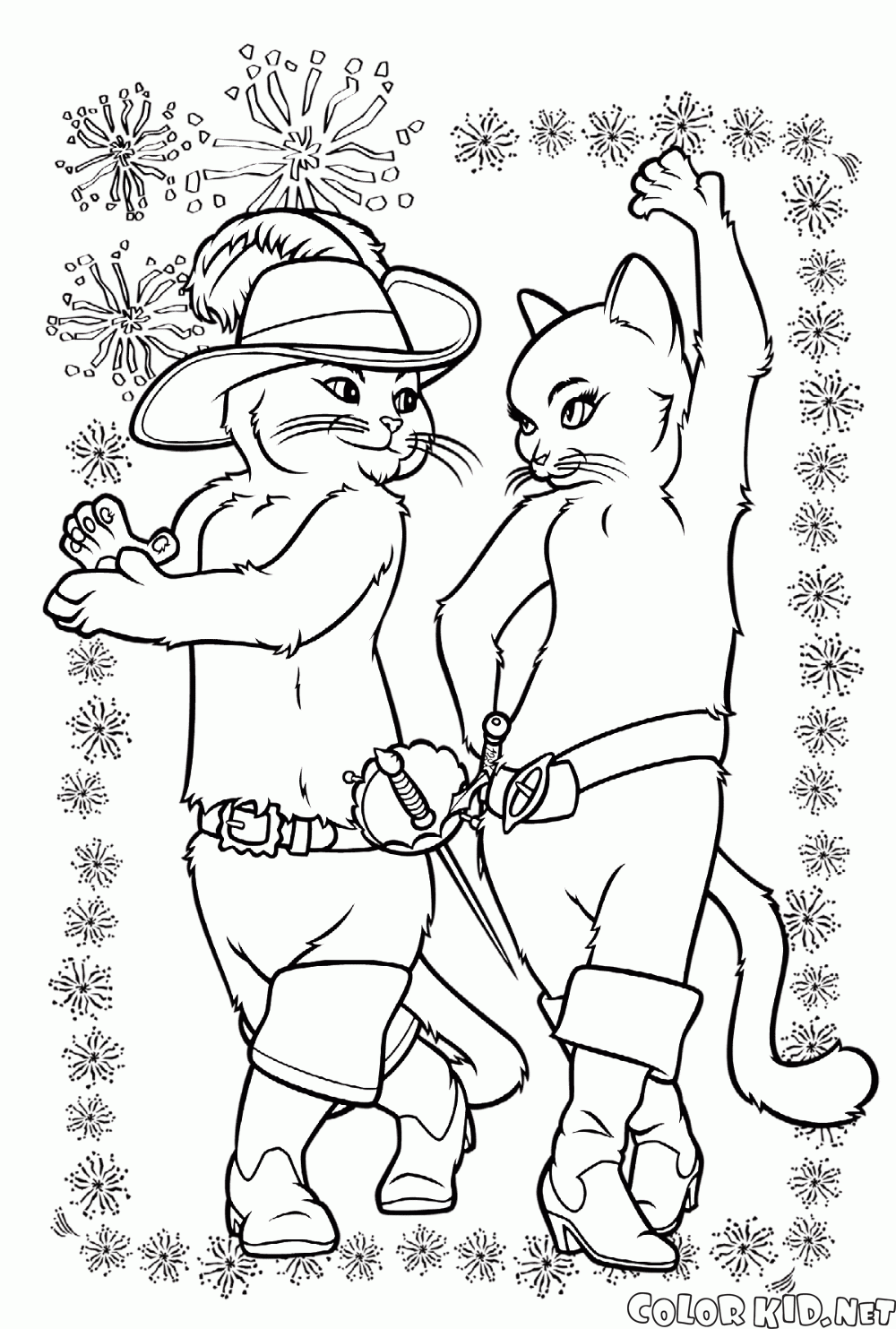 Раскраска - Танцы Кота в Сапогах