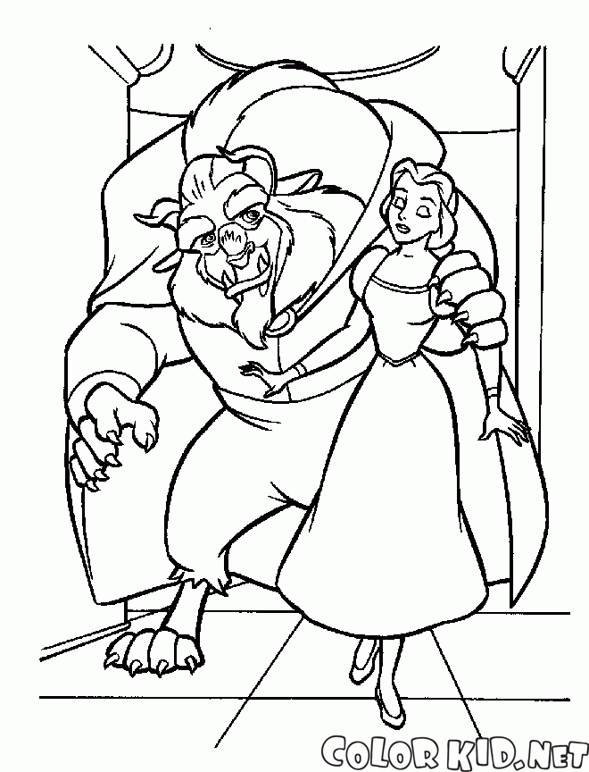 Раскраска - Белль прогуливается с Чудовищем