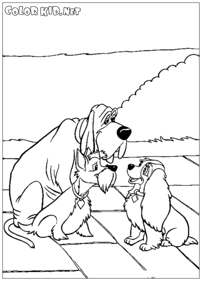 В разделе Мультфильмы вы найдете раскраски Леди и Бродяга и другие.