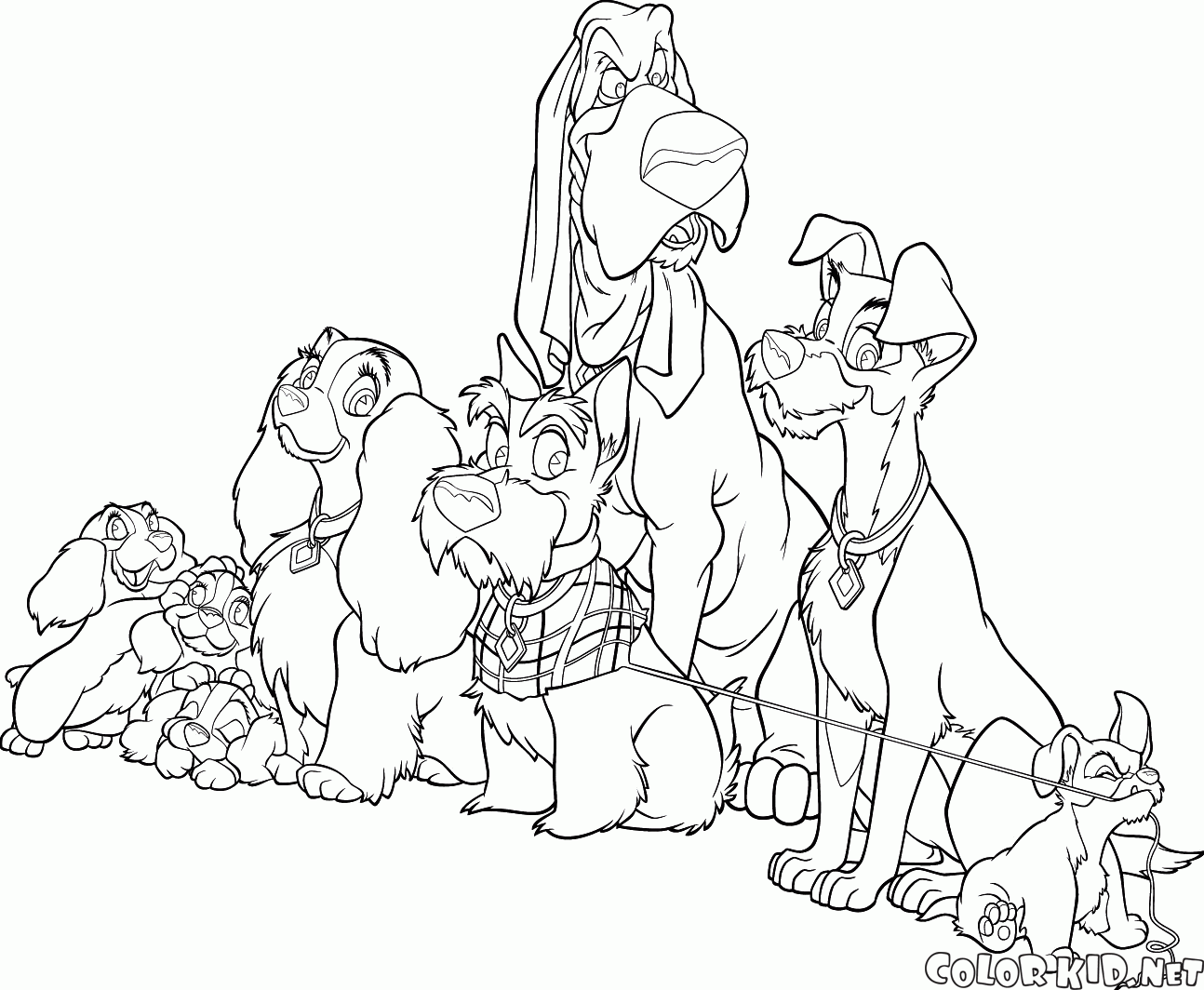 В разделе Мультфильмы вы найдете раскраски Леди и Бродяга и другие.