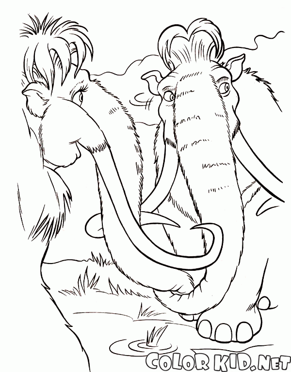 Раскраска - Мамонты Элли и Мэнни
