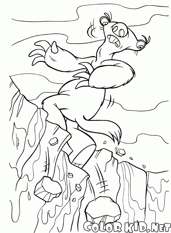 Сид пытается спастись от горного оползня. Надвигающийся ледник медленно сметает горы и сейчас камни сыплются из под лап ленивца. Сиду довольно страшно.
