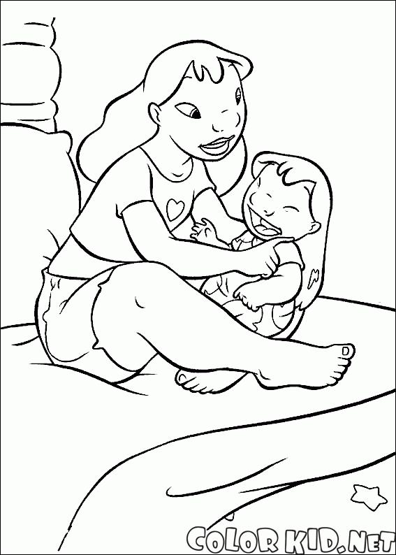 Раскраску для детей Лило и Нани вы можете бесплатно скачать и распечатать на нашем сайте.
