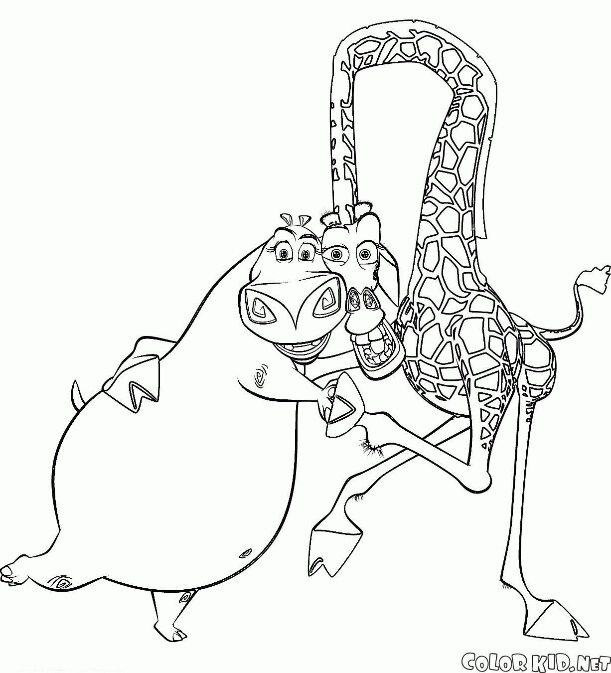 Раскраску для детей Глория и милый Жираф вы можете бесплатно скачать и распечатать на нашем сайте.