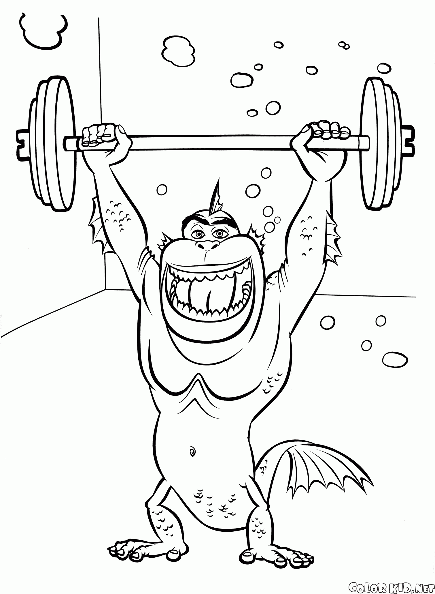 Недостающее звено активно занимается спортом. Сейчас он поднял штангу и очень собой доволен. У него мощные мускулы, покрытые плавниками и чешуей.