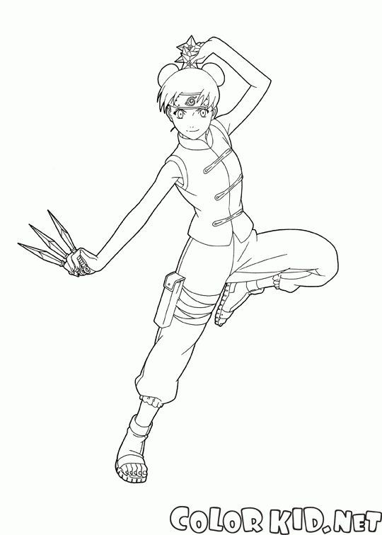 Девушка-ниндзя владеющая техникой метания сюрикенов. Сюрикен это метательный кинжал или звезда. Тентен прекрасно владеет разными типами оружия.