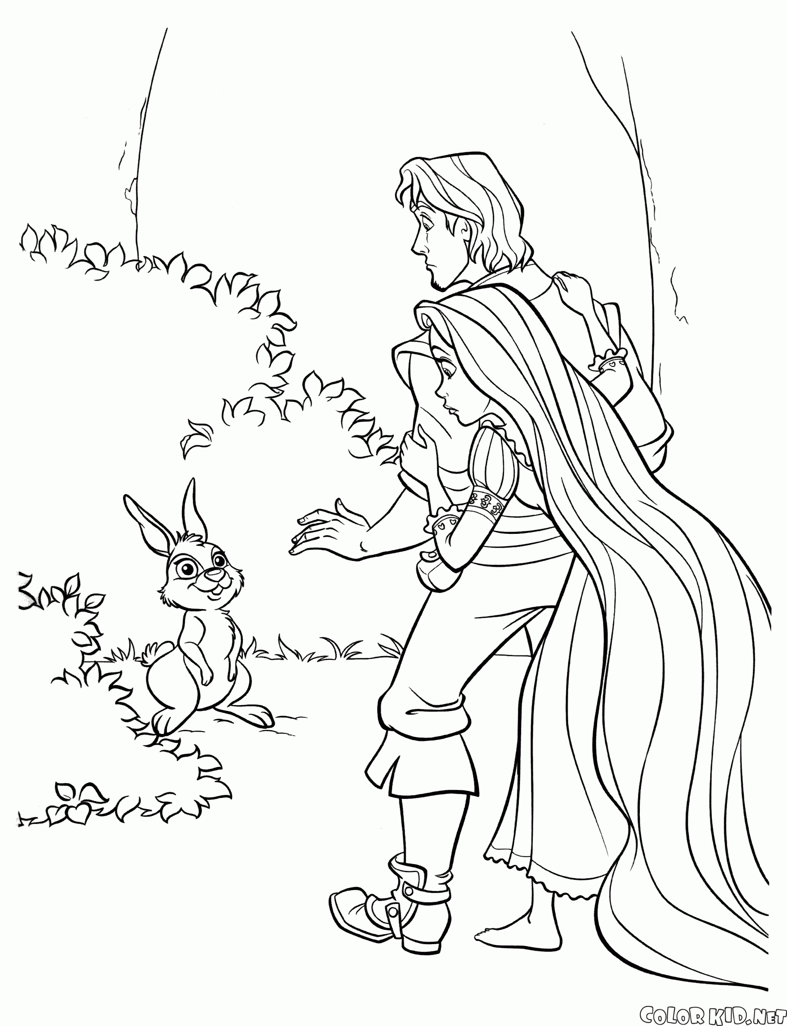 Рапунцель впервые увидела животное леса. Они шли по лесу с Флинном, и тут из кустов выскочил заяц. Зверек удивленно улыбается. Принцесса спряталась за своим другом, так как раньше не видела таких существ.