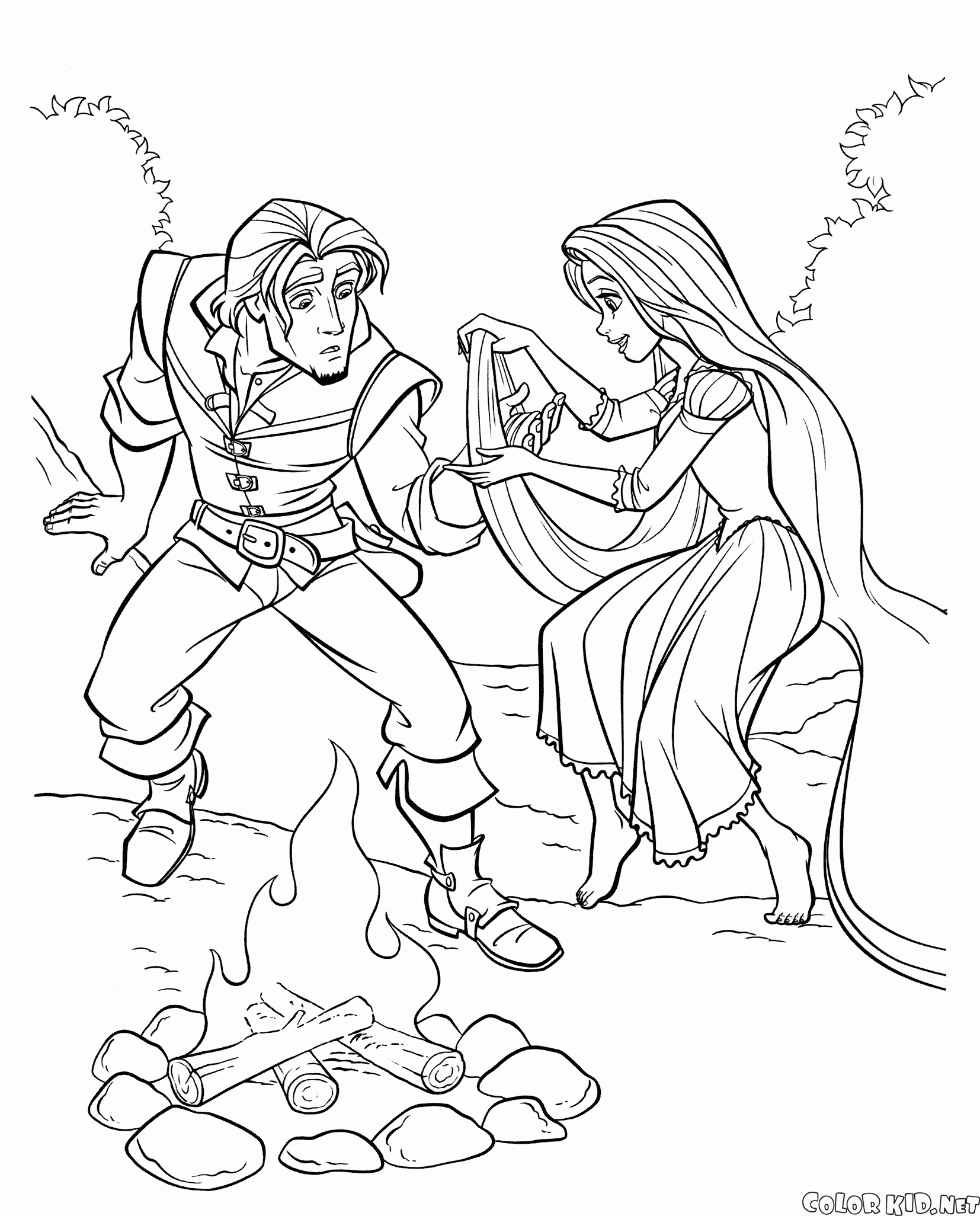 Раскраска - Рапунцель лечит Флинна