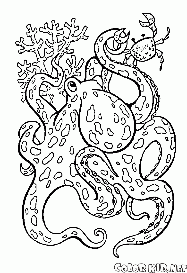 Раскраску для детей Большой Осьминог вы можете бесплатно скачать и распечатать на нашем сайте.