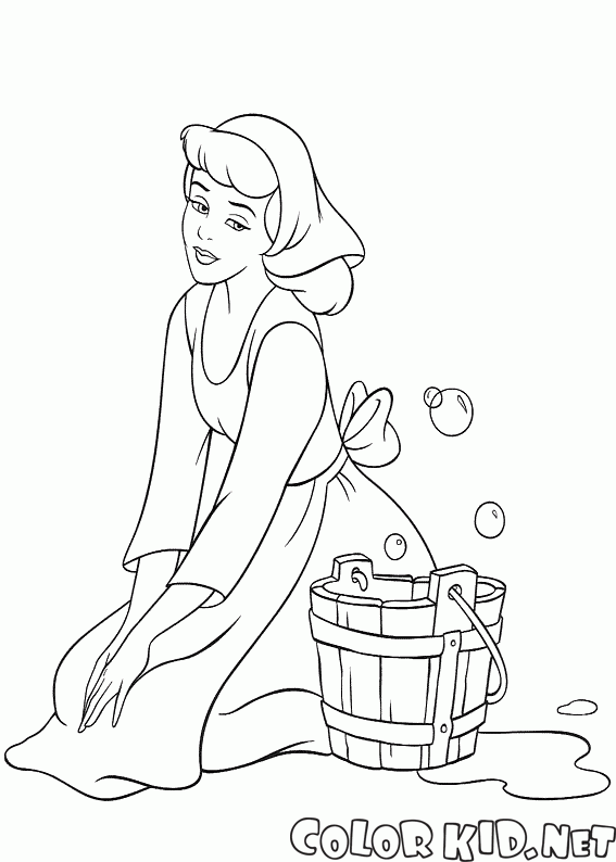Золушка моет пол