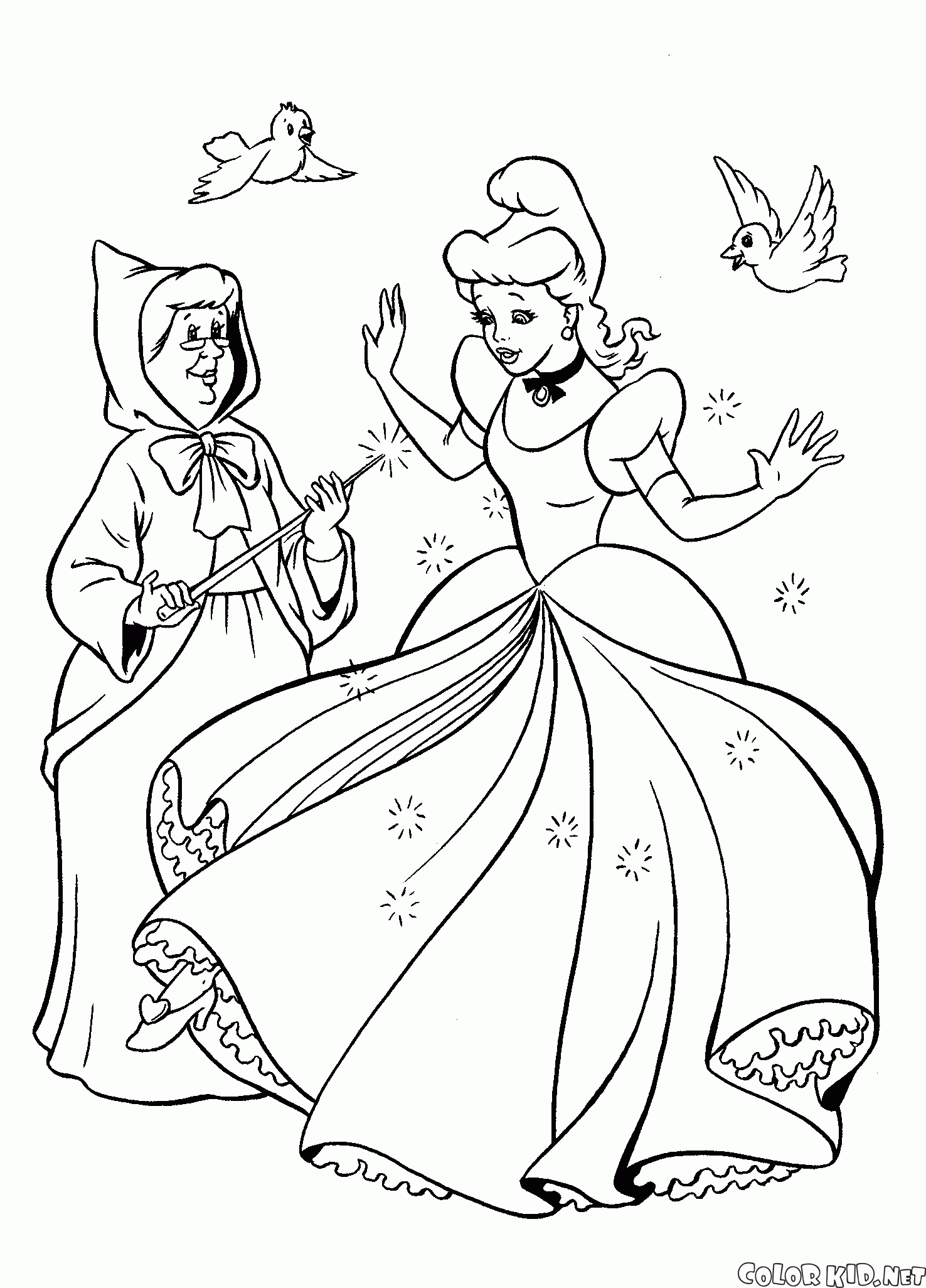 Раскраску для детей Новое платье Золушки вы можете бесплатно скачать и распечатать на нашем сайте.