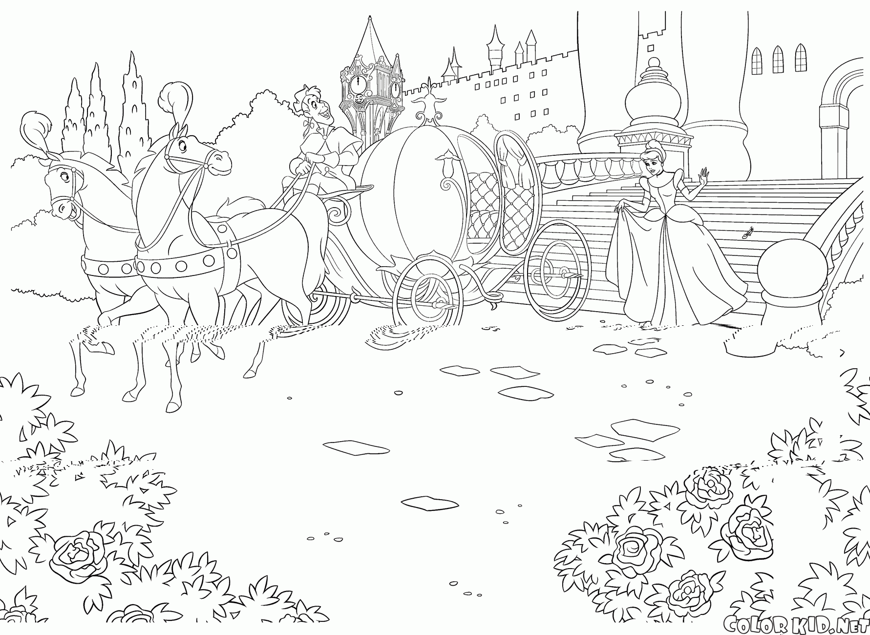 В разделе Мультфильмы вы найдете раскраски Золушка и другие.