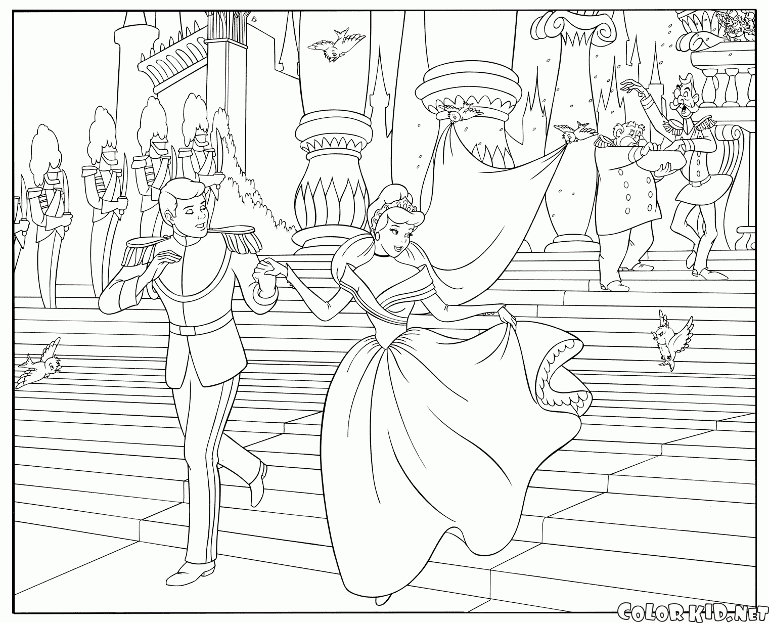 Раскраска - Золушка и туфелька