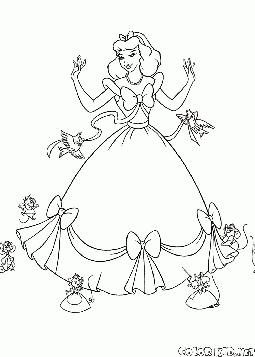 Раскраску для детей Золушка в красивом платье вы можете бесплатно скачать и распечатать на нашем сайте.