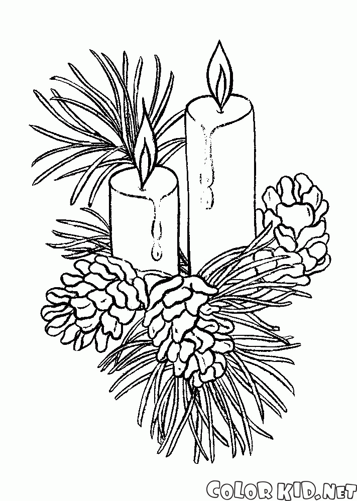 Раскраска - Рождественские свечи на ветке