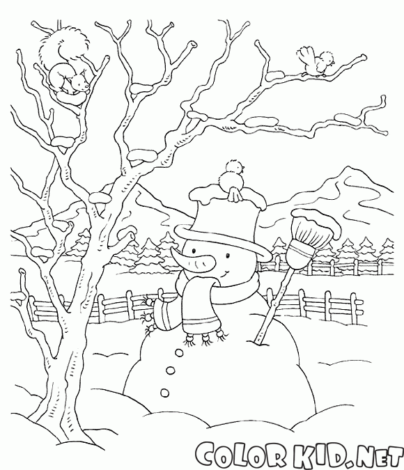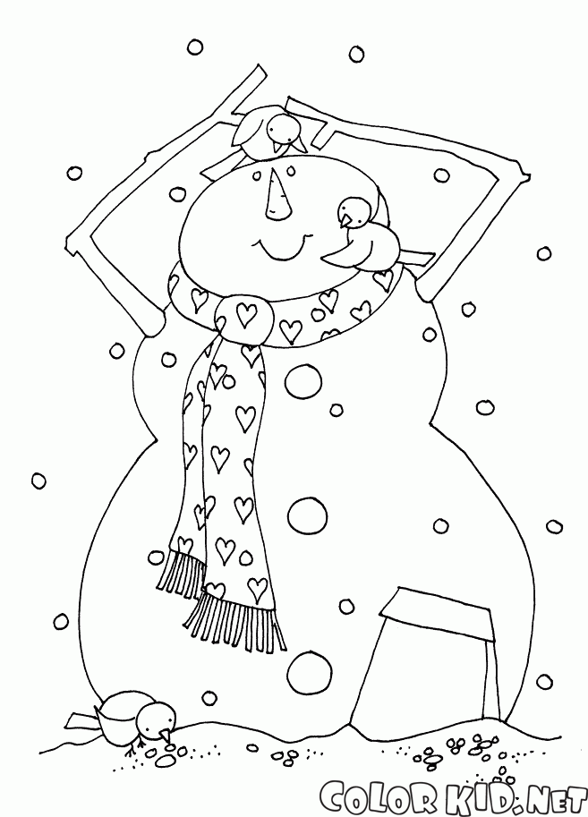 Снеговик и птичка
