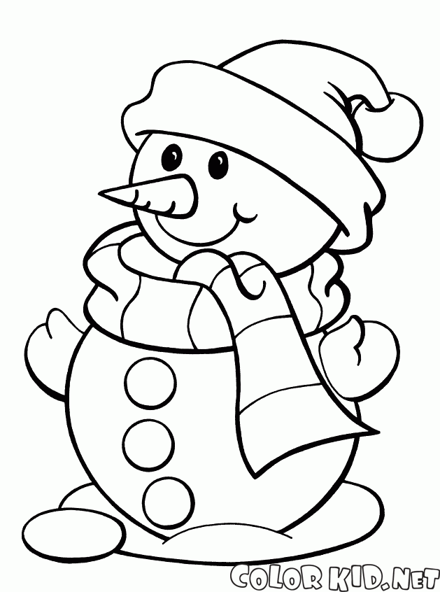 Снеговик в шарфе и шляпе