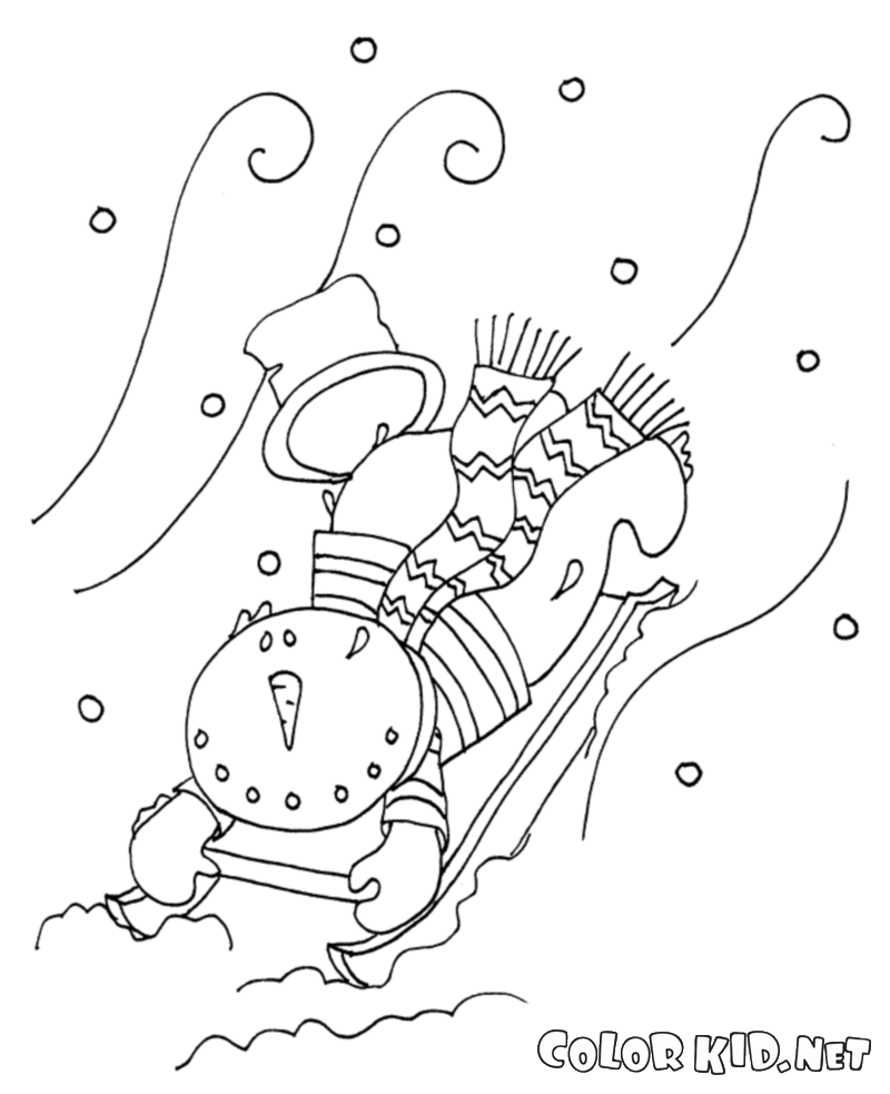 Снеговик катается с горки на высокой скорости