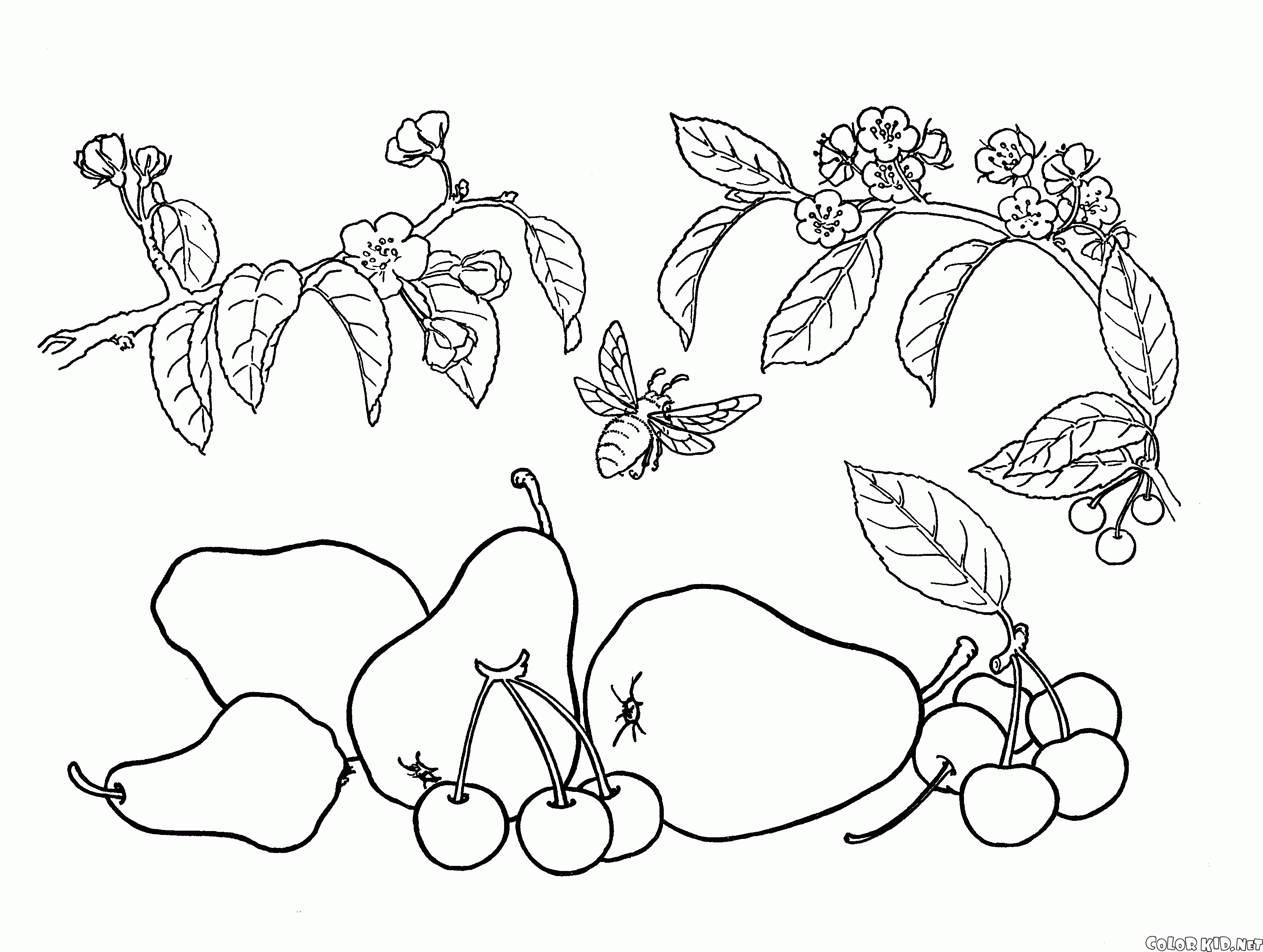 Раскраска - Груша и вишня