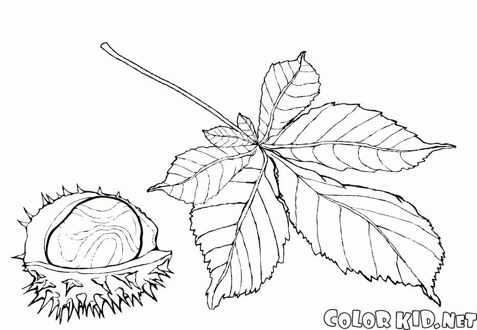 Раскраску для детей Плод и лист каштана вы можете бесплатно скачать и распечатать на нашем сайте.