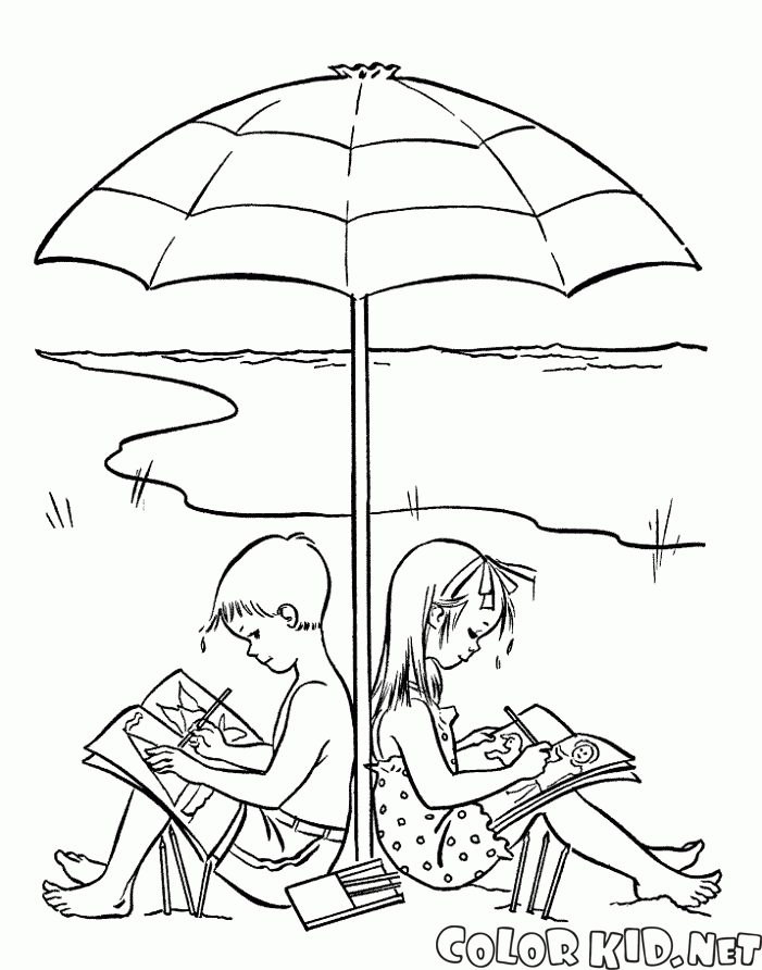 Раскраску для детей Дети под зонтиком от солнца вы можете бесплатно скачать и распечатать на нашем сайте.