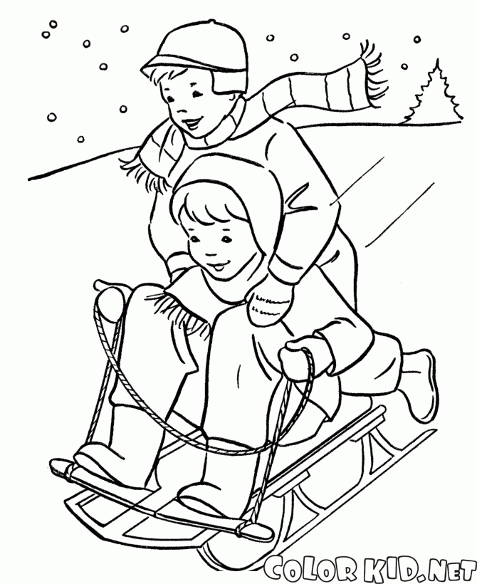 Раскраску для детей Дети катаются на санки вы можете бесплатно скачать и распечатать на нашем сайте.
