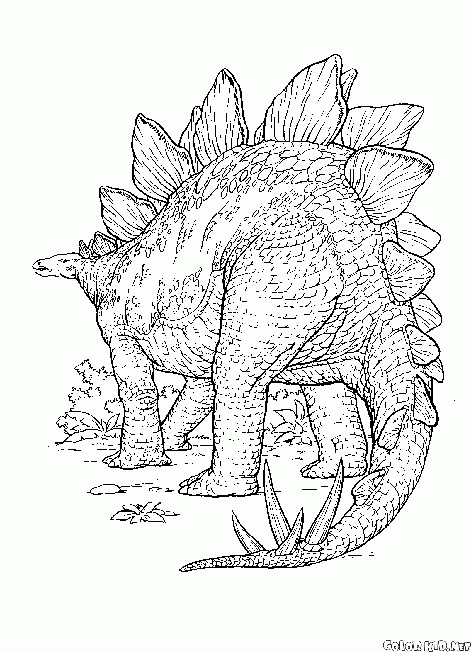 Раскраску для детей Динозавр с острыми шипами вы можете бесплатно скачать и распечатать на нашем сайте.