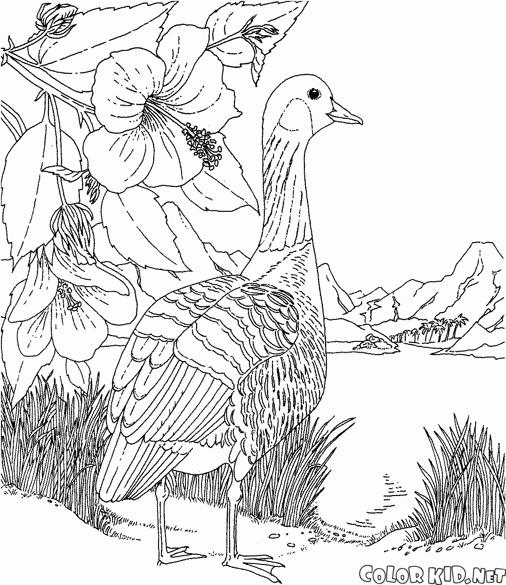 Раскраска - Гусь у озёра